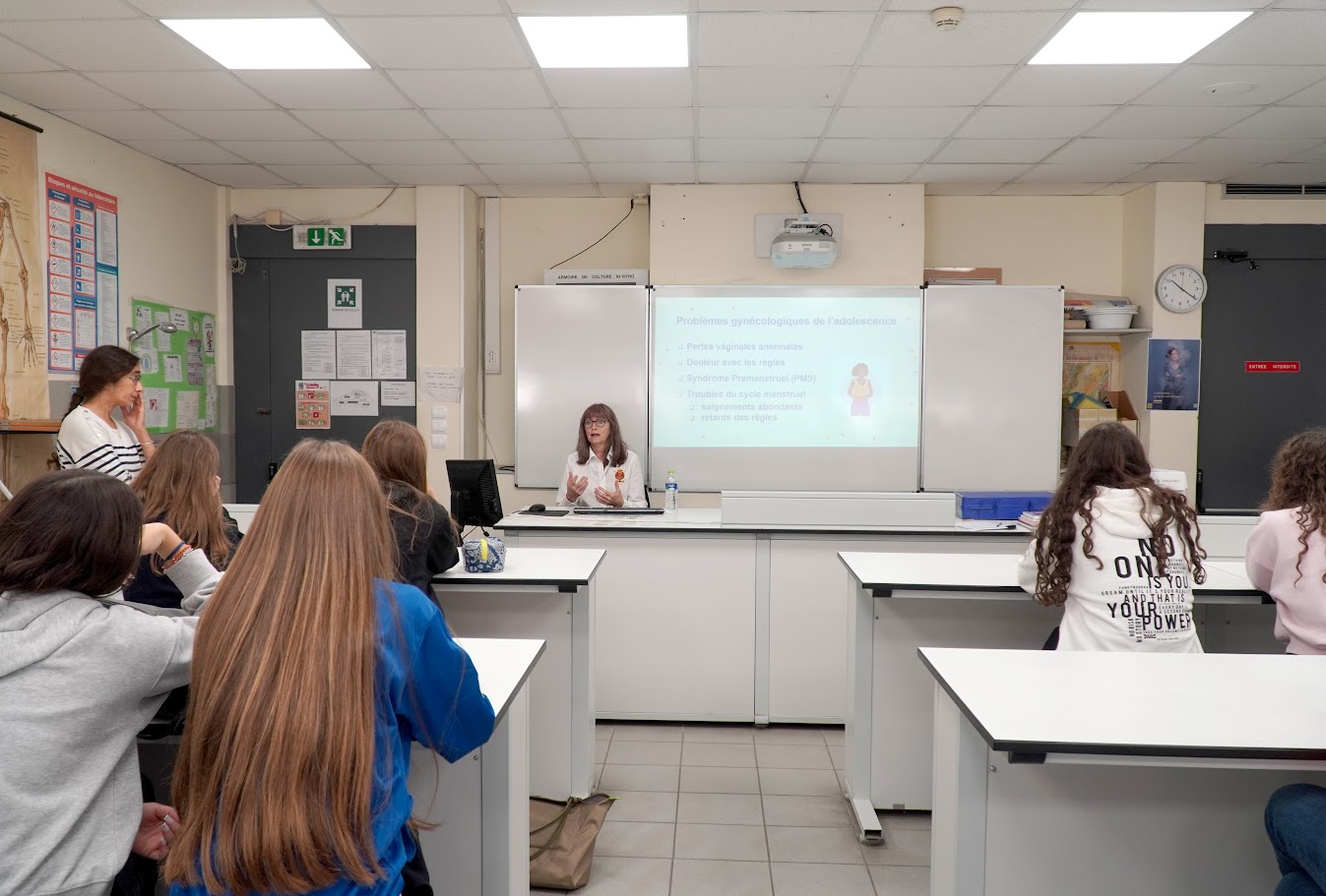 Dans le cadre du parcours d’éducation à la santé et à la citoyenneté, prévu par le ministère de l’Éducation nationale, nos élèves de seconde ont participé à une séance d’éducation à la vie affective, relationnelle et sexuelle. Les docteurs Colombero, Fiori, Giatras et Pantelakis ont donné de leur temps pour répondre aux questions posées par les élèves sur leurs préoccupations diverses : Respect, consentement, procréation, contraception, IST… Autant de sujets qui ont captivés ces jeunes gens. Des ateliers en petit groupe ont complété l’intervention.