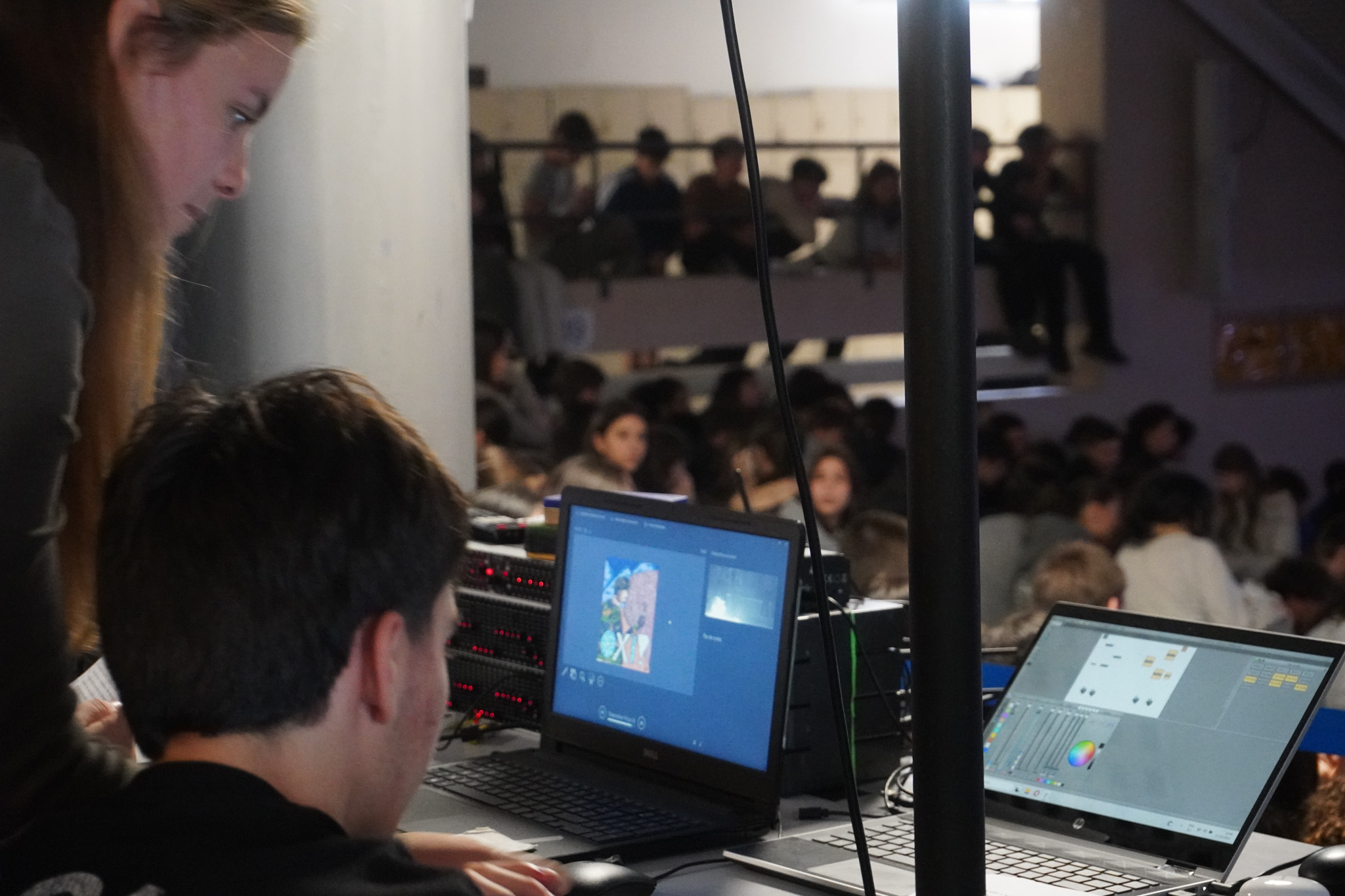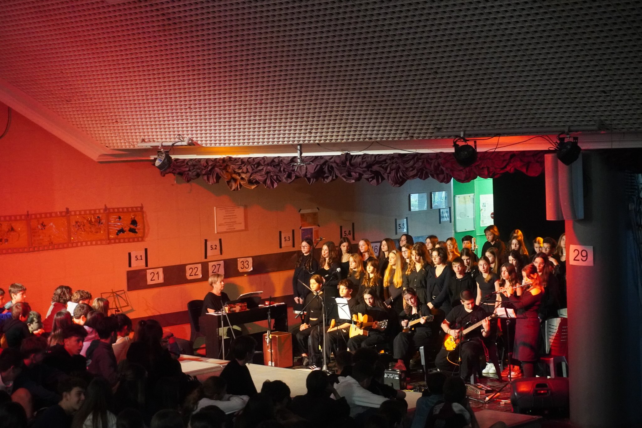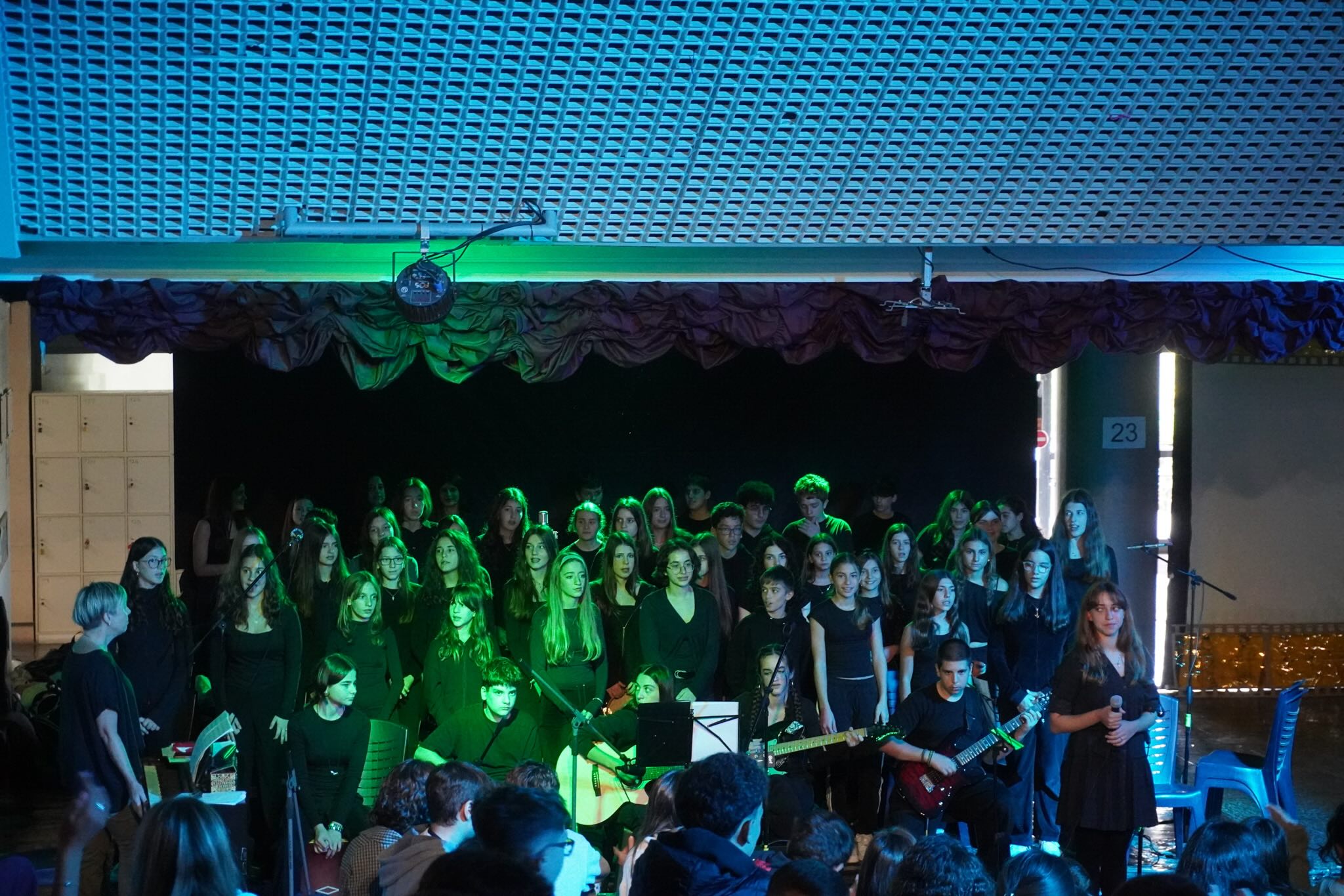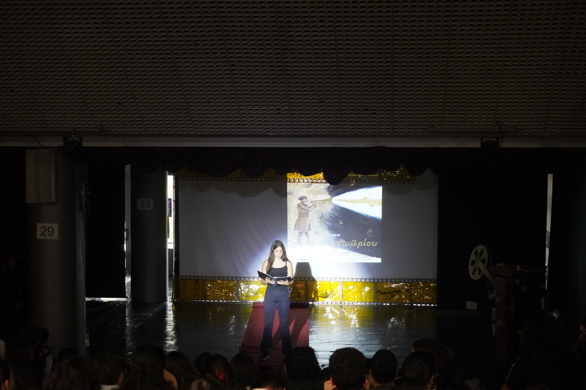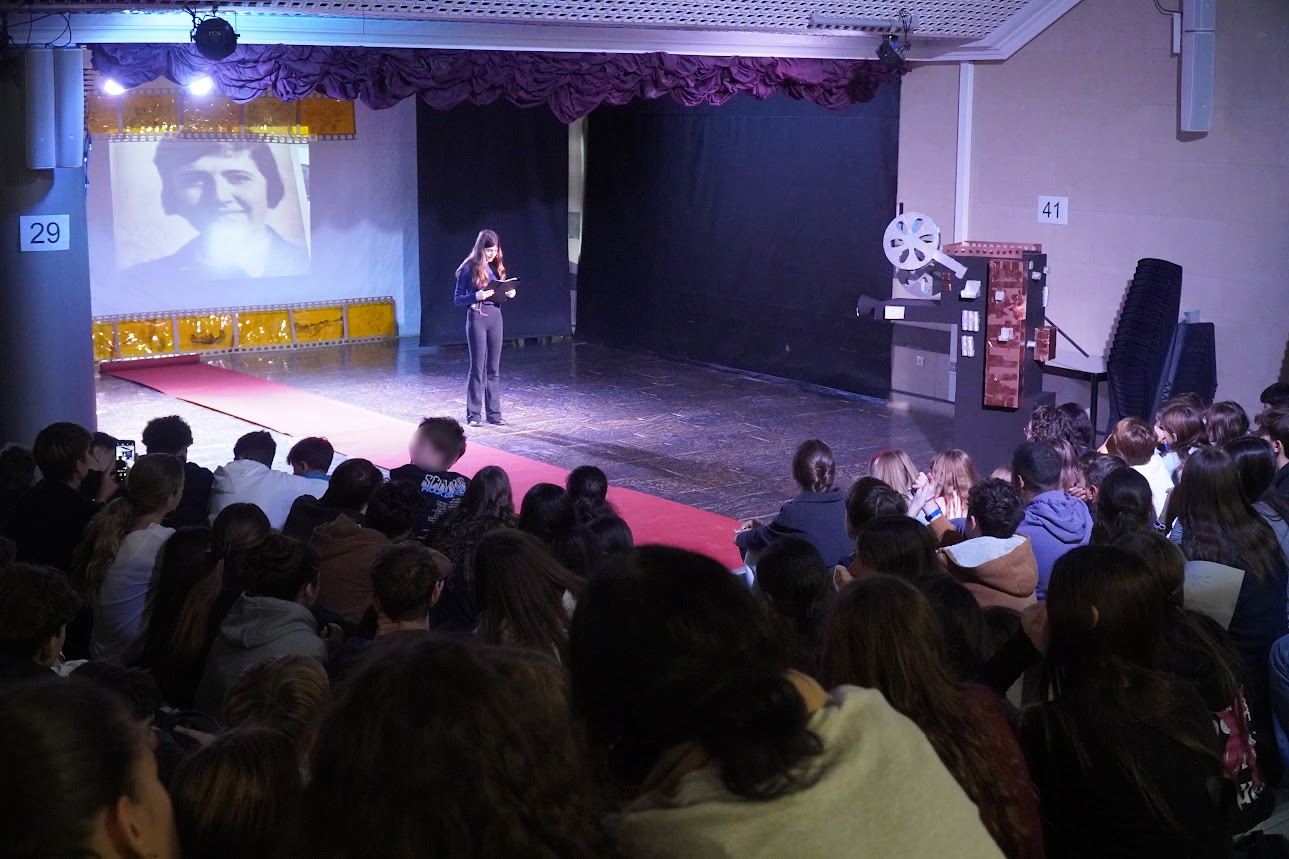 Le thème choisi était « Histoires de résistance », mettant en lumière, à travers ces récits, la résistance du peuple grec et son refus du fascisme et du nazisme. Les élèves, principalement issus des classes de B’ du Collège, ont grandement contribué à la réussite de la cérémonie : pour la plupart, c’était leur première participation à une fête scolaire, et ils ont donné le meilleur d’eux-mêmes avec beaucoup d’enthousiasme. La chorale de la section grecque a accompagné la célébration en interprétant des chants grecs et étrangers. Le club d’arts plastiques a également apporté une aide précieuse en réalisant les décors et le matériel visuel, tandis que les élèves-techniciens du Lycée ont assuré le soutien technique. Les récits étaient illustrés par des extraits de films consacrés à la guerre et à la résistance.