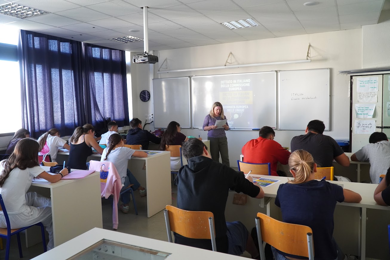 Le 26 septembre 2025, à l’occasion de la Journée européenne des langues, plusieurs classes du Lycée franco-hellénique d’Athènes, du collège comme du lycée, ont participé à une dictée, proposée en plusieurs langues, organisée par la Commission européenne.