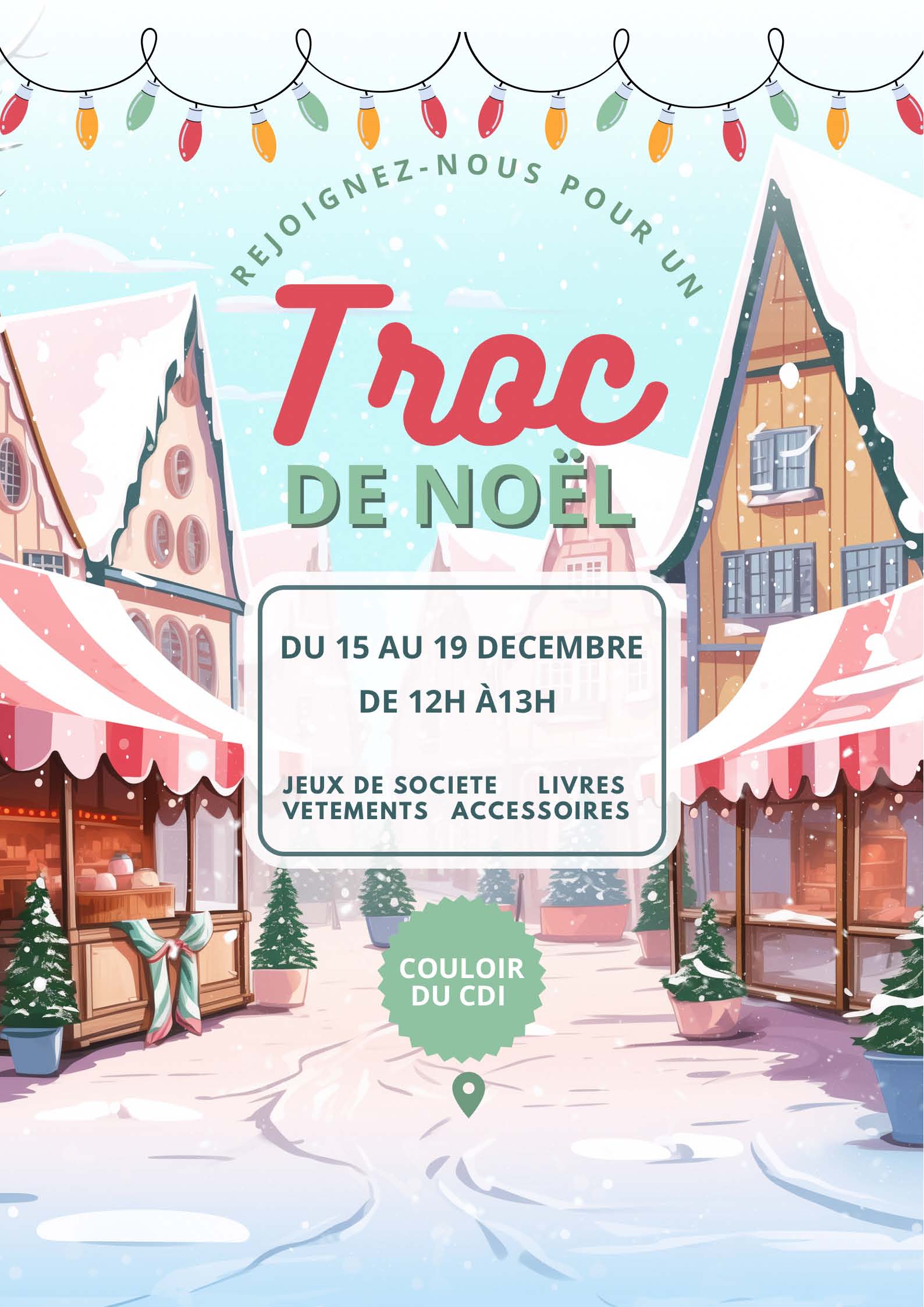Cette année, nous avons mis en place pour la première fois au LFHED un Troc de Noël à destination des élèves et des membres du personnel, durant la dernière semaine avant les vacances de Noël, tous les jours sur le temps de pause du midi.
