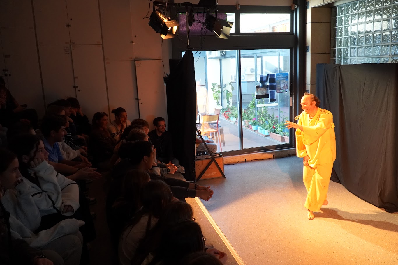 Permettre aux élèves d’assister, dans leur établissement, à une pièce de théâtre majeure du répertoire français au programme de la cinquième, et d’interroger le processus de création (il s’agissait d’un seul-en-scène) est en effet une des priorités des équipes pédagogiques de Théâtre et de Lettres et de notre Lycée, tout comme des comédiens et des parents. Que les élèves italianisants aient également pu dialoguer avec le comédien en italien et en français lors de la rencontre-débat qui a suivi le spectacle a également été très apprécié.